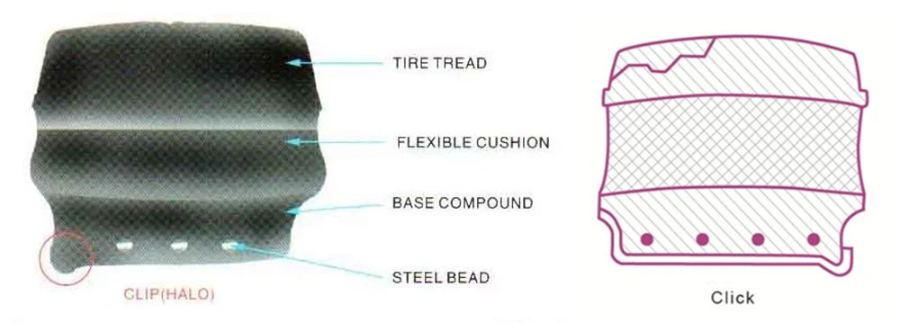 • Клип қосылған жүк тиегіш қатты шиналарКлип қосылған жүк тиегіш қатты шиналар